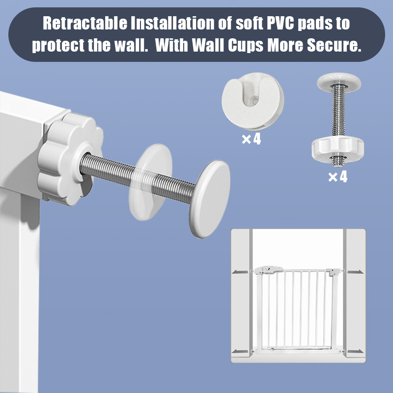 Includes specially designed wall cups for stronger and more stable mounting, ensuring the gate stays firmly in place and preventing slipping or tipping for enhanced child safety.