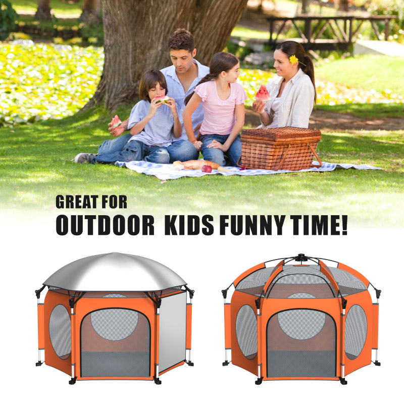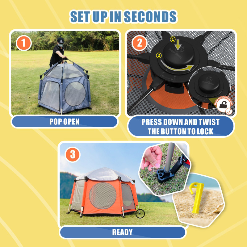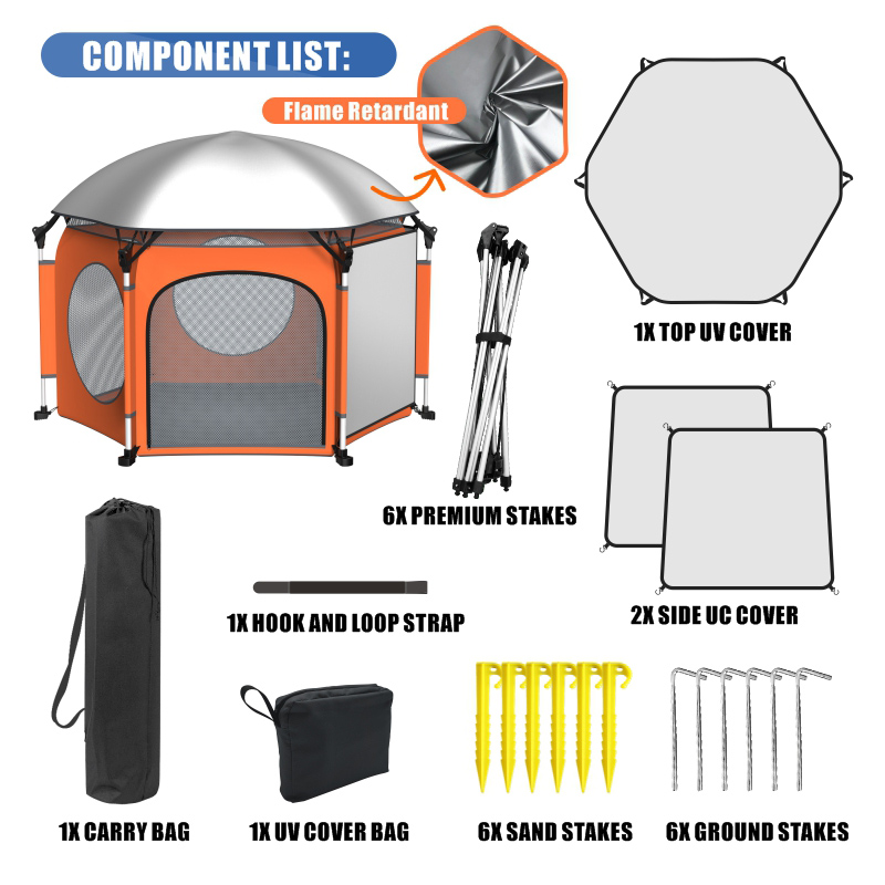 Equipped with a flame-retardant, special-coated top UV cover to block sunlight; the bottom is waterproof, keeping the interior dry on grass/sand.