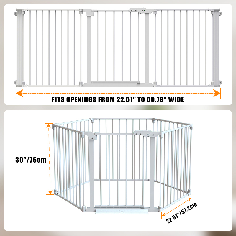 Multiple Shapes: Create a straight gate, square, pentagon, or arched barrier to block fireplaces, stairs, or doorways.