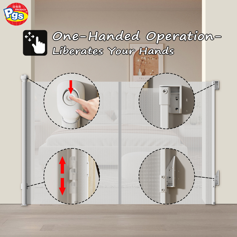 Space-Saving: Unlike metal safety gates, it retracts fully when open, eliminating obstructions.
