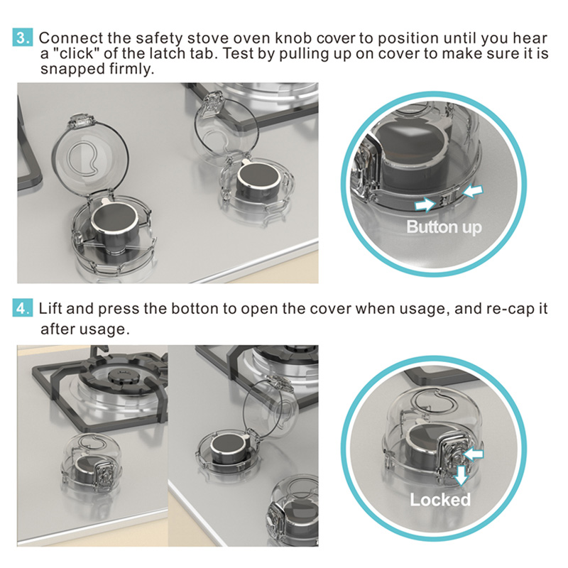 The push-to-open design allows adults to easily access the knob when cooking, while remaining child-resistant. Simply lift and press the button to open, then close and lock it after use.
