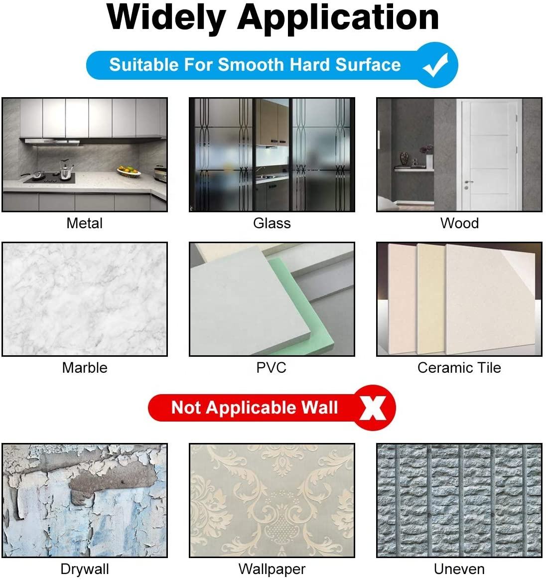 Equipped with strong adhesive backing (3M grade) No drilling is required. It can be torn off without leaving any residue. It is suitable for various smooth surfaces such as tiles, glass, wood boards and metals.