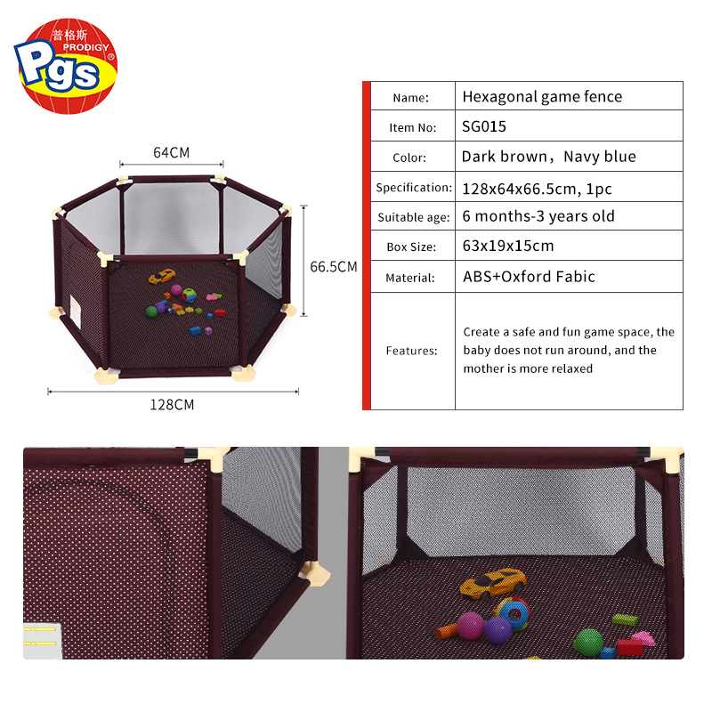 New Desige Cute Strong Body Smooth Surface Endure Dirty Portable Hexagon Fence Baby Play Yard.It can retract out of the way when not in use.Space efficient.No tripping hazard. Also can be used indoors as well as outdoors. Easy to install and Sturdy abd durable mesh.