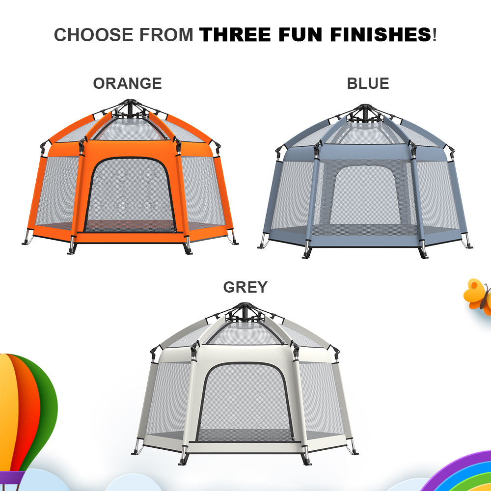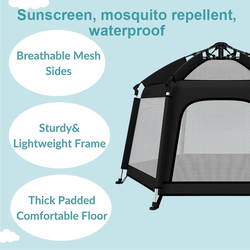 - 【Multi-Purpose Kids Tent, for Indoors & Outdoors】Baby play tent can be used as a playpen, play yard, fenced space, baby beach tent, travel cot, mosquito net, and more, suitable for infants, toddlers, kids..., additionally, it can also serve as a pet enclosure for your puppy friends to play.