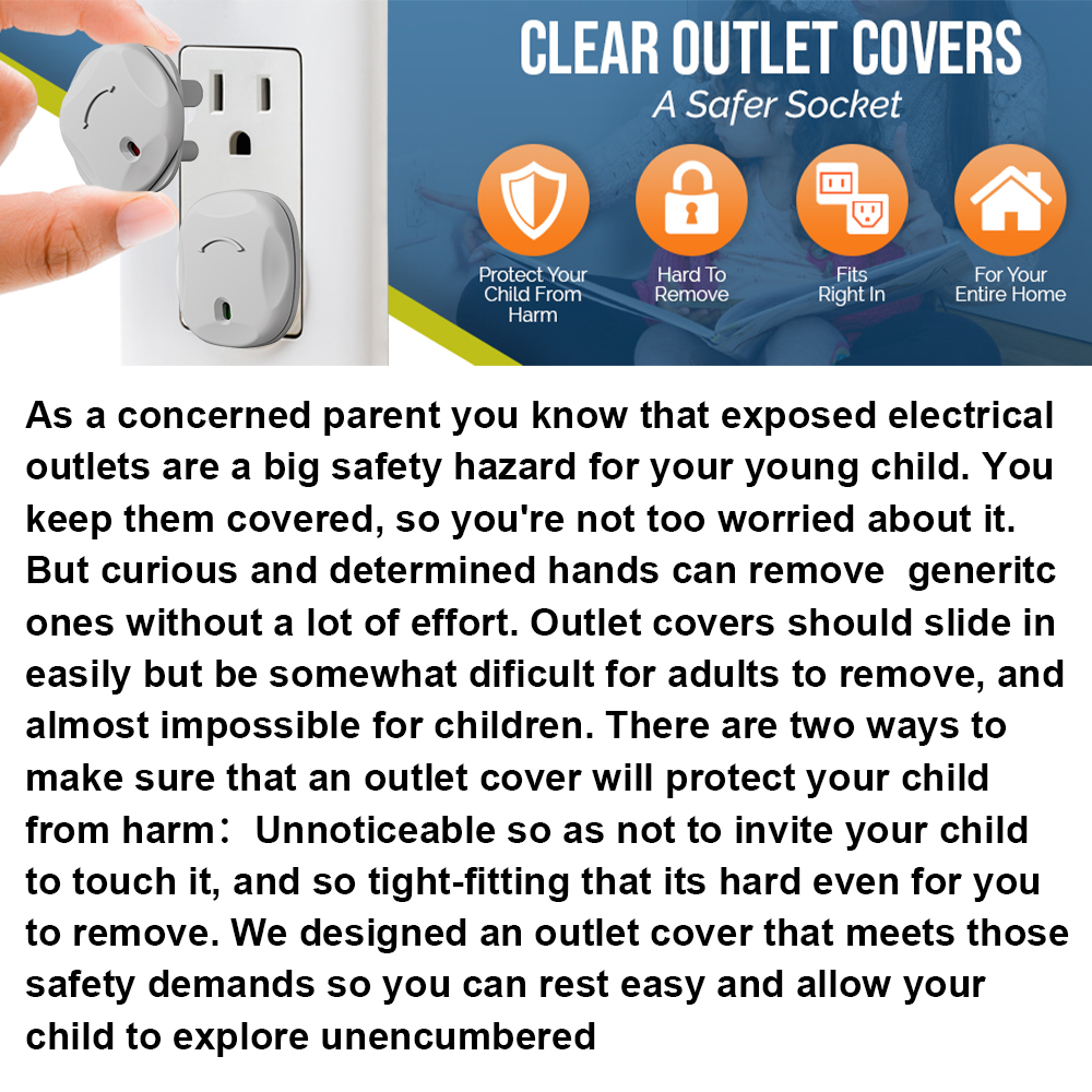 - 【 The Nemesis of Electric Shock Danger 】 These plug covers for electrical outlets are specially designed to protect children from the risk of electric shock. Whether it's damp weather or cold winter, the power protection cover can protect your children from danger as much as possible.