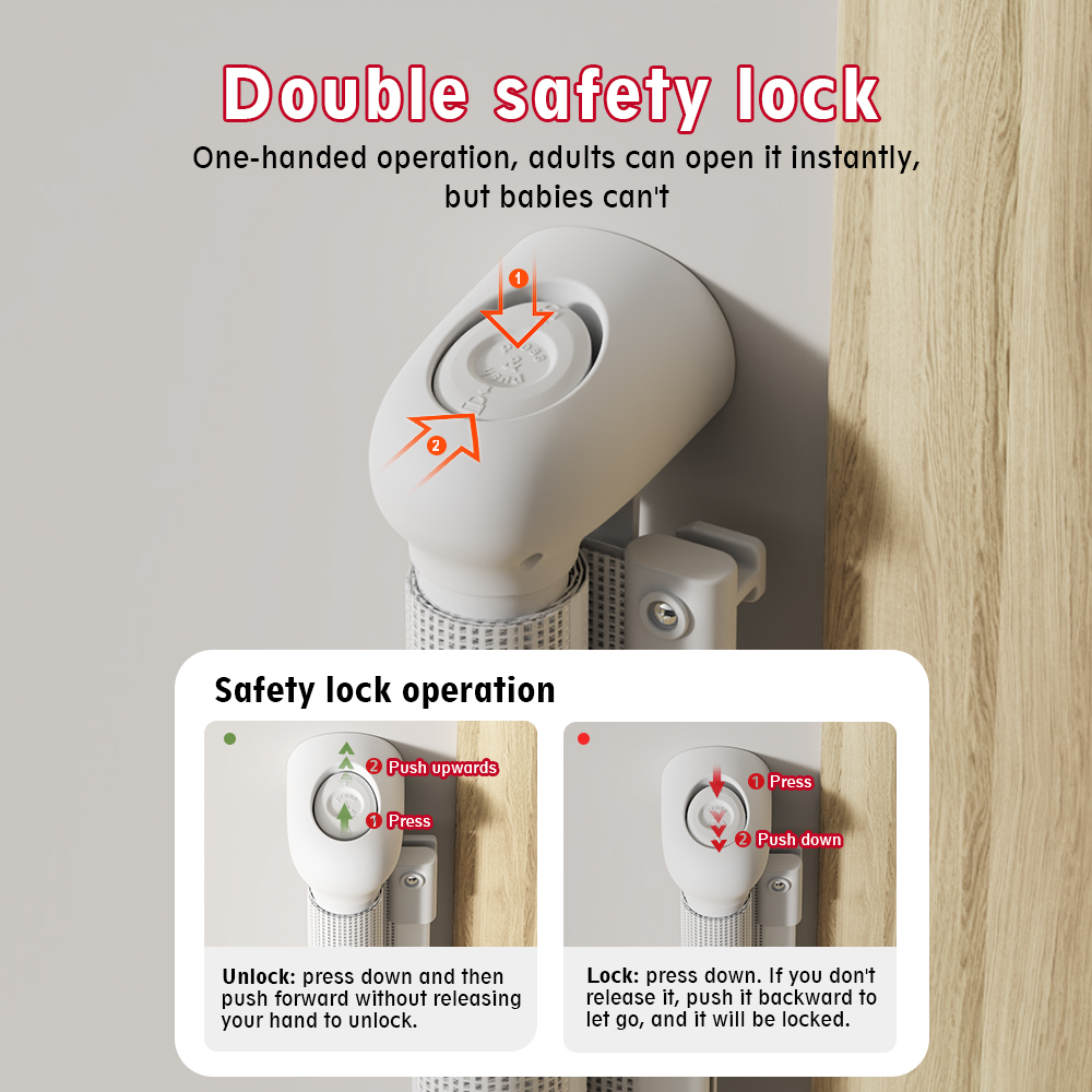Adjustable retractable design fits stair entrances perfectly, that prevents babies from opening independently—effectively stopping stair climbing accidents.