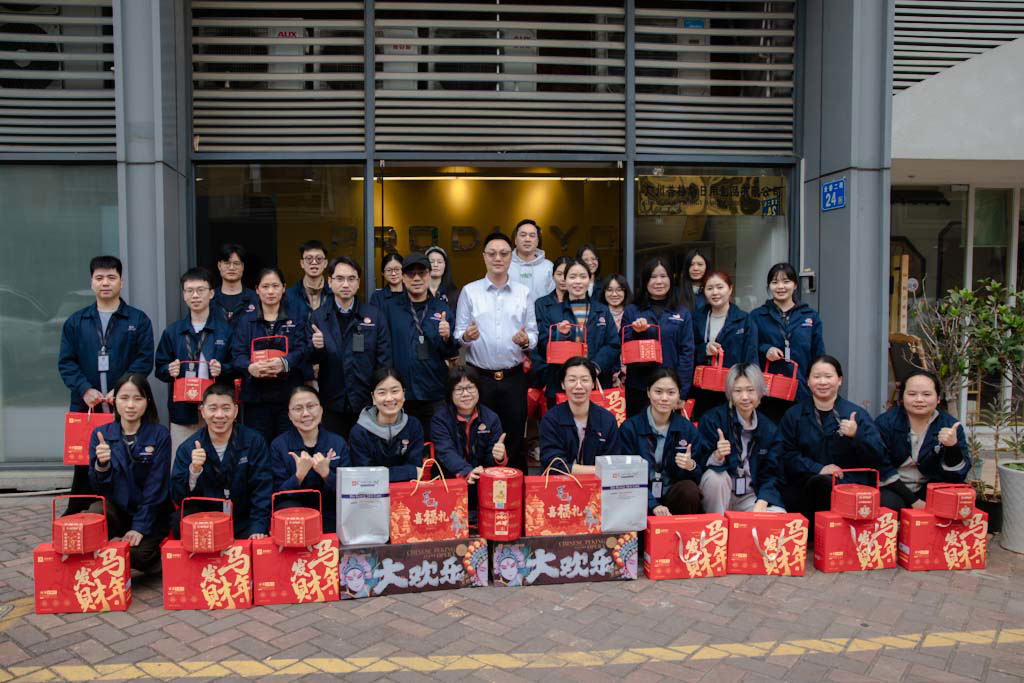 Ahead of the holiday break (February 12–24, 2026), all employees received festive gift packages filled with seasonal treats, practical essentials, and special Year of the Horse-themed souvenirs. The atmosphere was warm and lively as our team gathered to collect their gifts, pose for a group photo, and exchange New Year wishes.