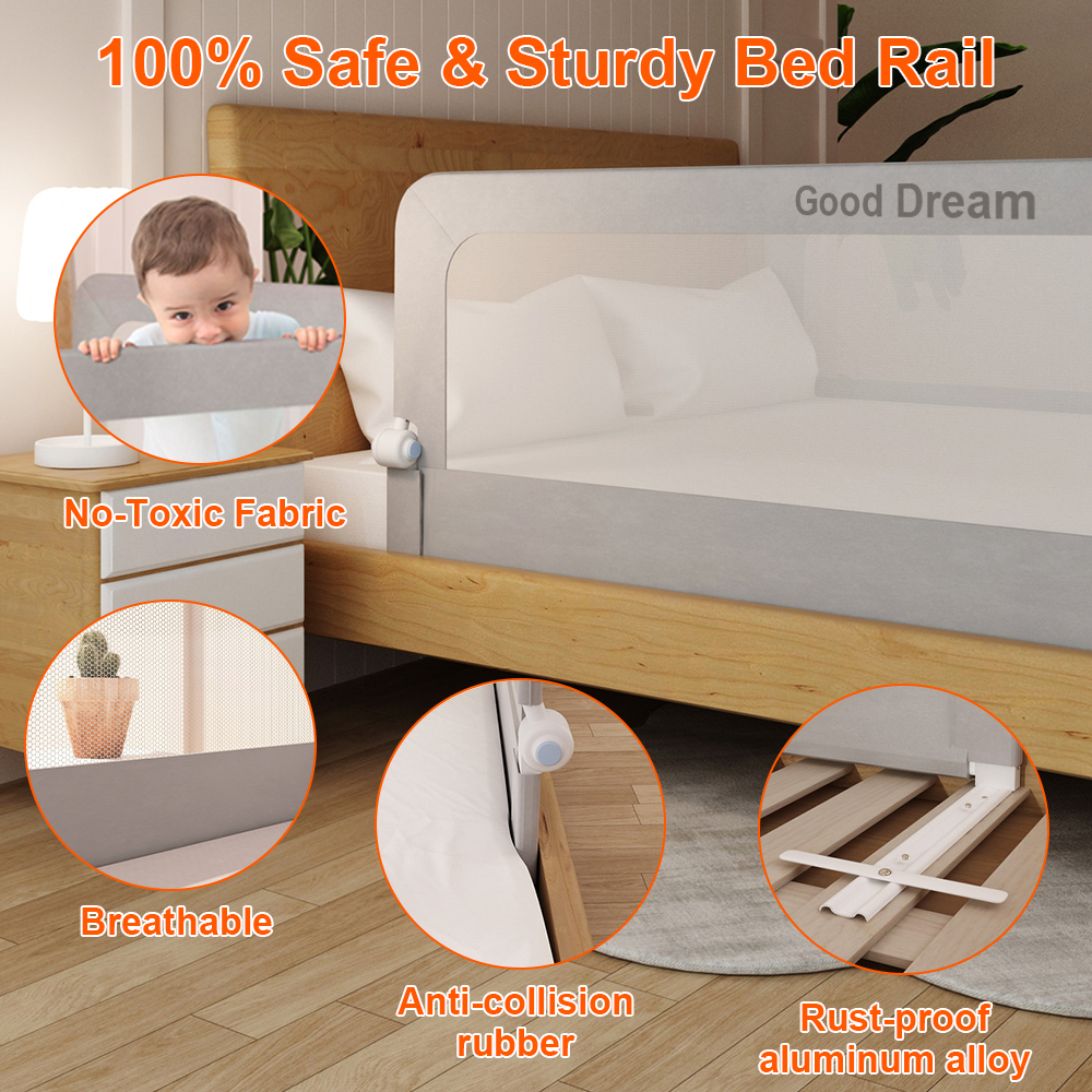 Prevent Falls, Sleep Soundly: Babies can easily roll off the edge while rolling over or crawling. Our rails feature a reinforced, elevated structure to effectively prevent accidental falls, letting parents rest easy.