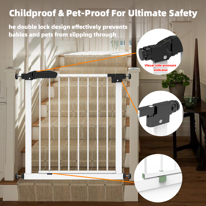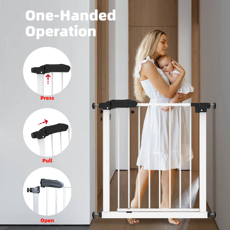 - Child Safety Gate with One Hand Operation: Mesh baby gate features a secure double lock that’s tough for toddlers but easy for adults. Designed for busy parents, easily open or close with one hand while holding a baby, groceries, or multitasking at home